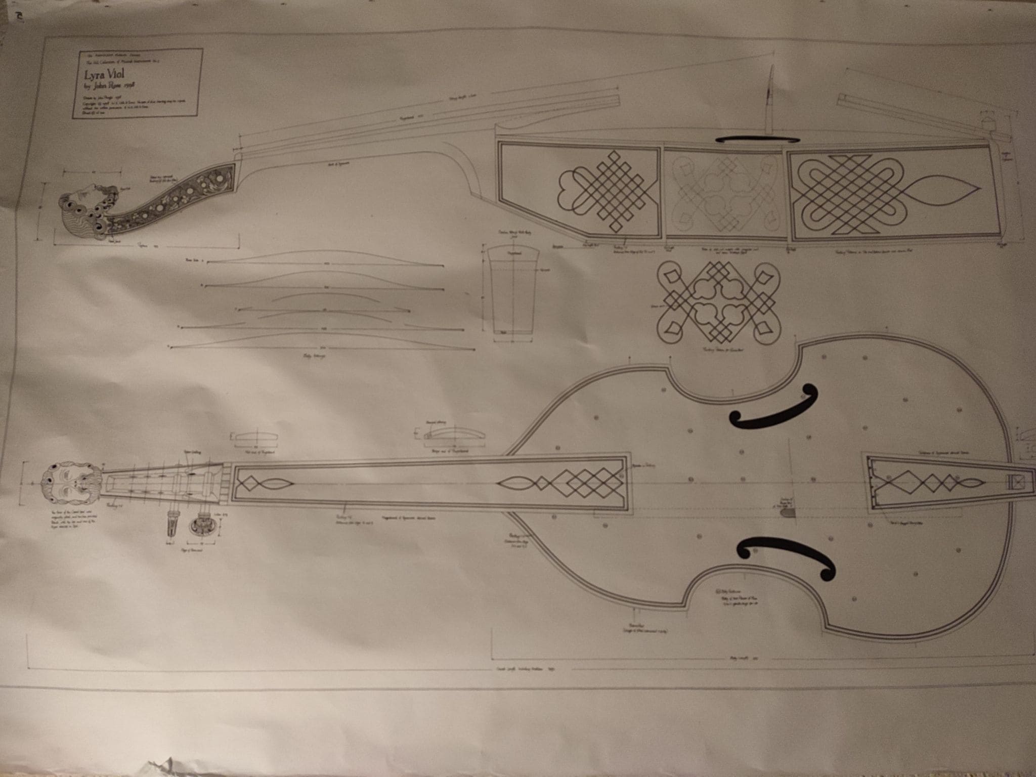 Avant la fabrication d’un instrument, tout commence par des recherches liminaires le concernant. Il peut s’agir de relevés effectués dans les divers musées ou bien d’analyses iconographiques sur les peintures d’époque. L’étape suivante consiste à réaliser un dessin technique de l’instrument au compas et à la règle.